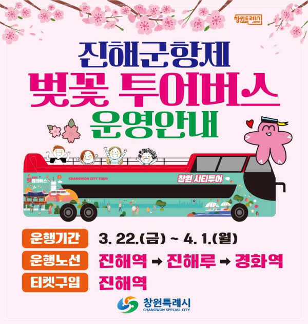 진해군항제 벚꽃 투어버스를 운영 한다고 합니다!