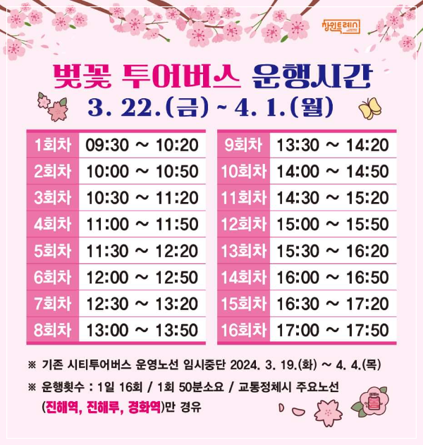 🚌운영기간 : 2024.3.22.(금) ~ 4.1.(월)